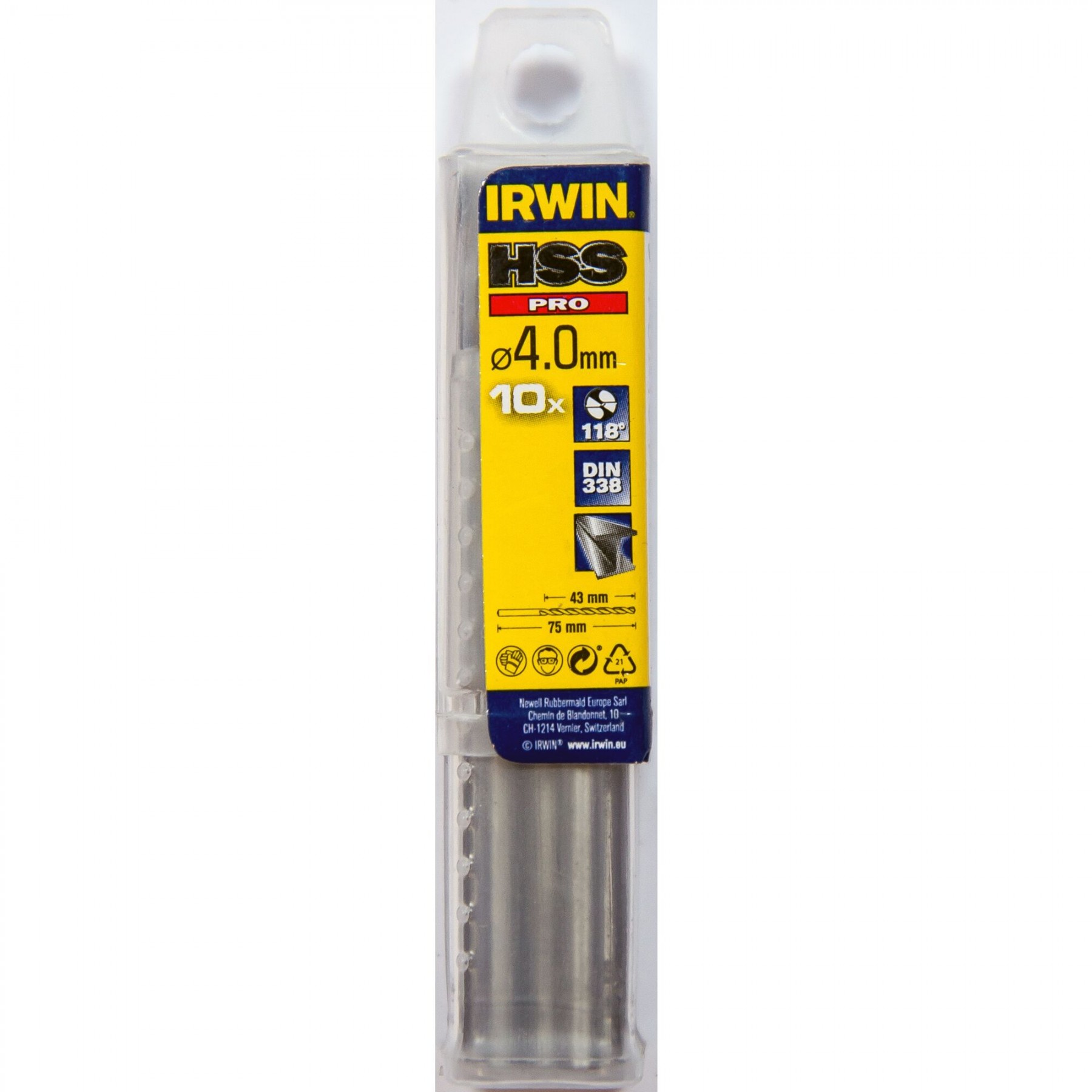 Delená špička s uhlom 118 ° prináša vyšší výkon a veľmi dobré vystredenie. Presné začatie vŕtania, nie je nutné otvor predvŕtavať ani používať pilotný vrták. Rýchlo preniká do materiálu, je potrebné menej úsilia/tlaku. Vrták HSS PRO disponuje nižším rizikom prasknutia pri vŕtaní aj s menším priemerom vďaka vysokej pružnosti. Optimálny výkon pri vŕtaní platí aj za nepriaznivých podmienok. Nízka odchýlka a vysoká sústrednosť prináša maximálnu presnosť. Vrták je vyrobený z vysoko odolnej rýchloreznej ocele. Vrták s povrchovou úpravou - leštený strieborný povrch
