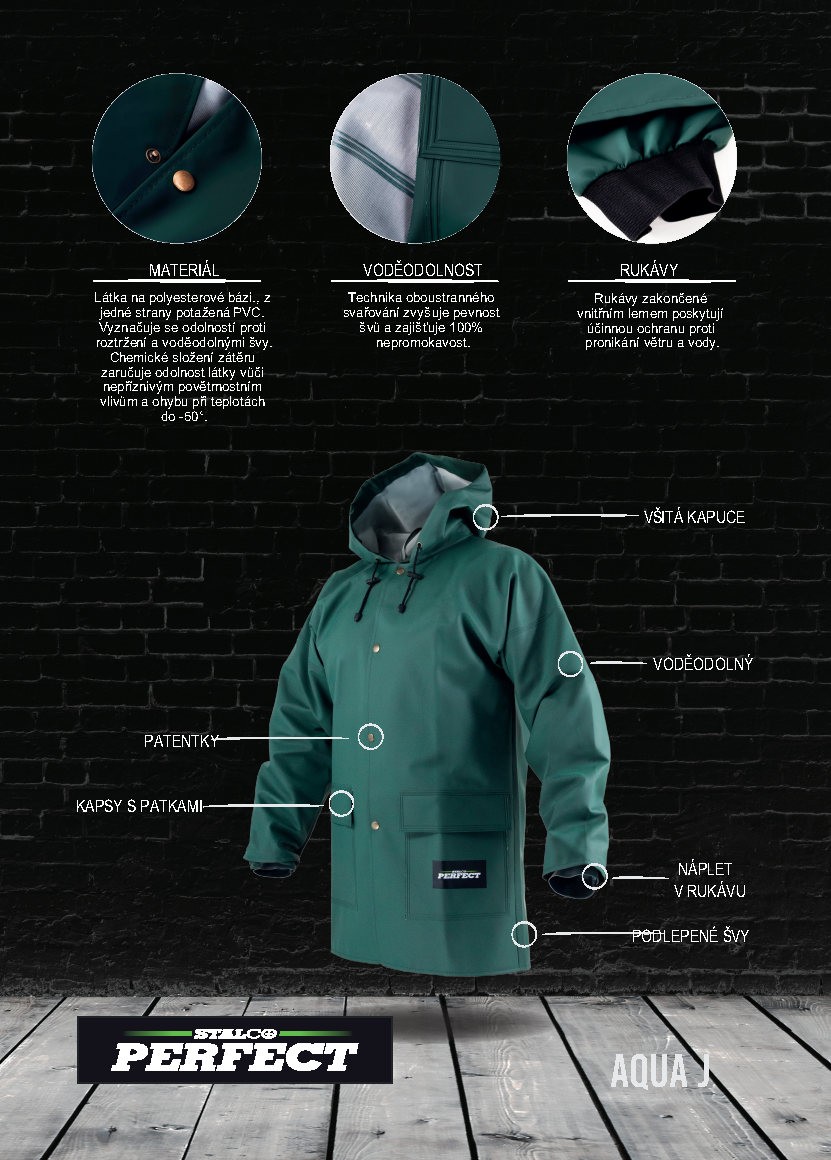 • vodeodolný materiál PLAVITEX s veľmi vysokou odolnosťou proti vetru a nízkej okolitej teplote • tepelnoizolačné vlastnosti, ktoré udržujú telesné teplo • zapínanie na patentky • veľké vrecká zaistené chlopňami • voľný tvar, ktorý neobmedzuje pohyb • integrovaná kapucňa nastaviteľná pomocou šnúrok • náplet v rukáve • podlepené švy • reflexné prvky • zloženie: PLAVITEX • gramáž: 350 g/m2 • farba: zelená • veľkosť: L