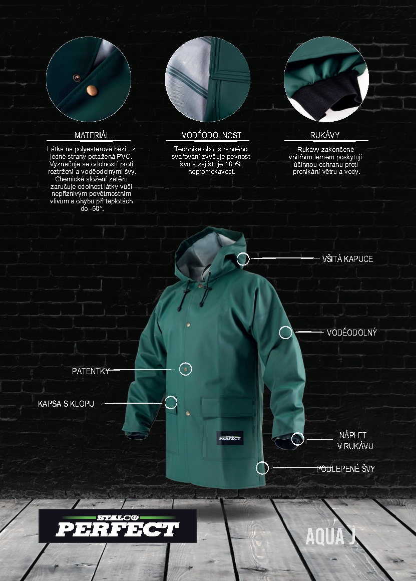 • vodeodolný materiál PLAVITEX s veľmi vysokou odolnosťou proti vetru a nízkej okolitej teplote • tepelnoizolačné vlastnosti, ktoré udržujú telesné teplo • zapínanie na patentky • veľké vrecká zaistené chlopňami • voľný tvar, ktorý neobmedzuje pohyb • integrovaná kapucňa nastaviteľná pomocou šnúrok • náplet v rukáve • podlepené švy • reflexné prvky • zloženie: PLAVITEX • gramáž: 350 g/m2 • farba: zelená • veľkosť: XL