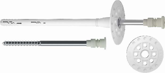 • Materiál: z vysoce kvalitního kopolymeru polypropylenu, ocelová rozpěrná stopka potažená pravým polyamidem se skelným vláknem omezujícím vznik tepelných mostů (hlava stopky) • Účel: k připevňování termoizolace na stavební materiály, jako jsou např.: beton třídy C, keramická cihla, lehčený agregovaný beton, pórobeton. • Max. tloušťka izolace: 260 mm