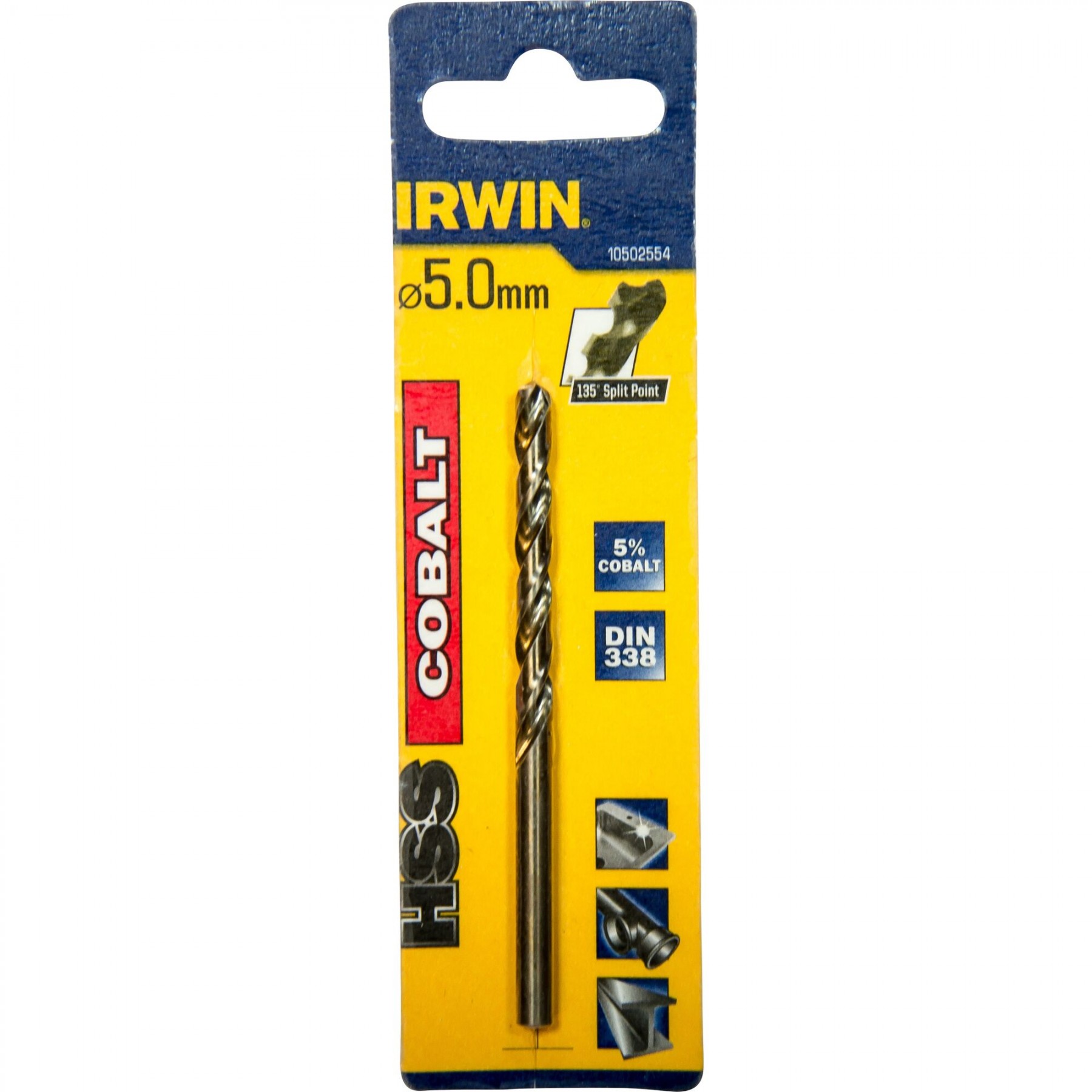 Broušená špička s úhlem 135° zajišťuje dokonalé vystředění a menší tlak při vrtání. Broušená spirála v průmyslové kvalitě zajišťuje přesné vrtání a rychlý odběr odvrtaného materiálu. Tělo vrtáku vyrobeno z vysoce kvalitní rychlořezné oceli s 5 % obsahem kobaltu (Co). Příměs kobaltu zvyšuje odolnost vrtáku vůči teplu a přispívá ke značnému zvýšení životnosti. Zlatavý povrch díky tepelné úpravě nabízí vyšší odolnost. Baleno v papírovém blistru.