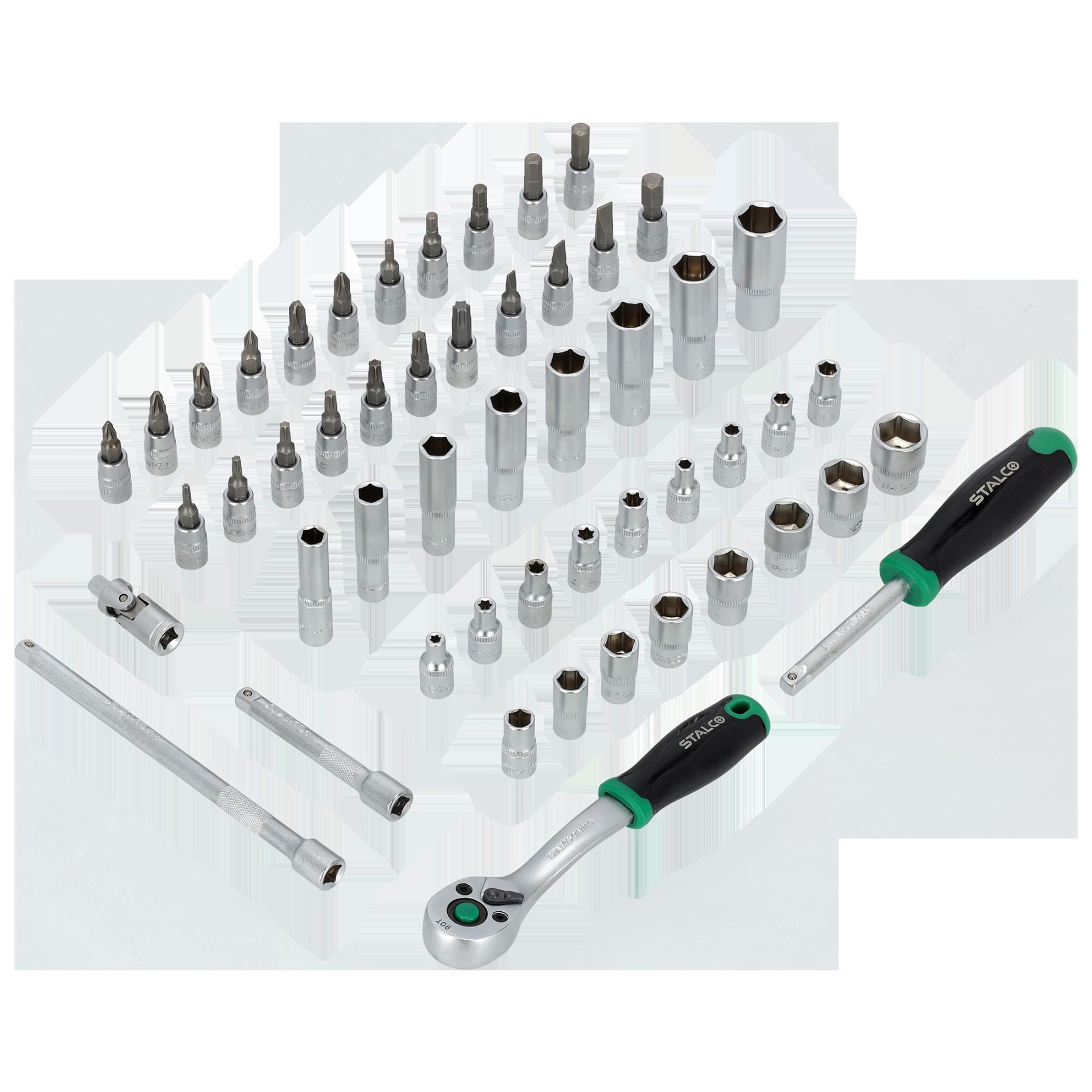 Sada nástrčných klíčů se speciální vložkou z EVA pěny, která pasuje do všech vozíků na nářadí STALCO.