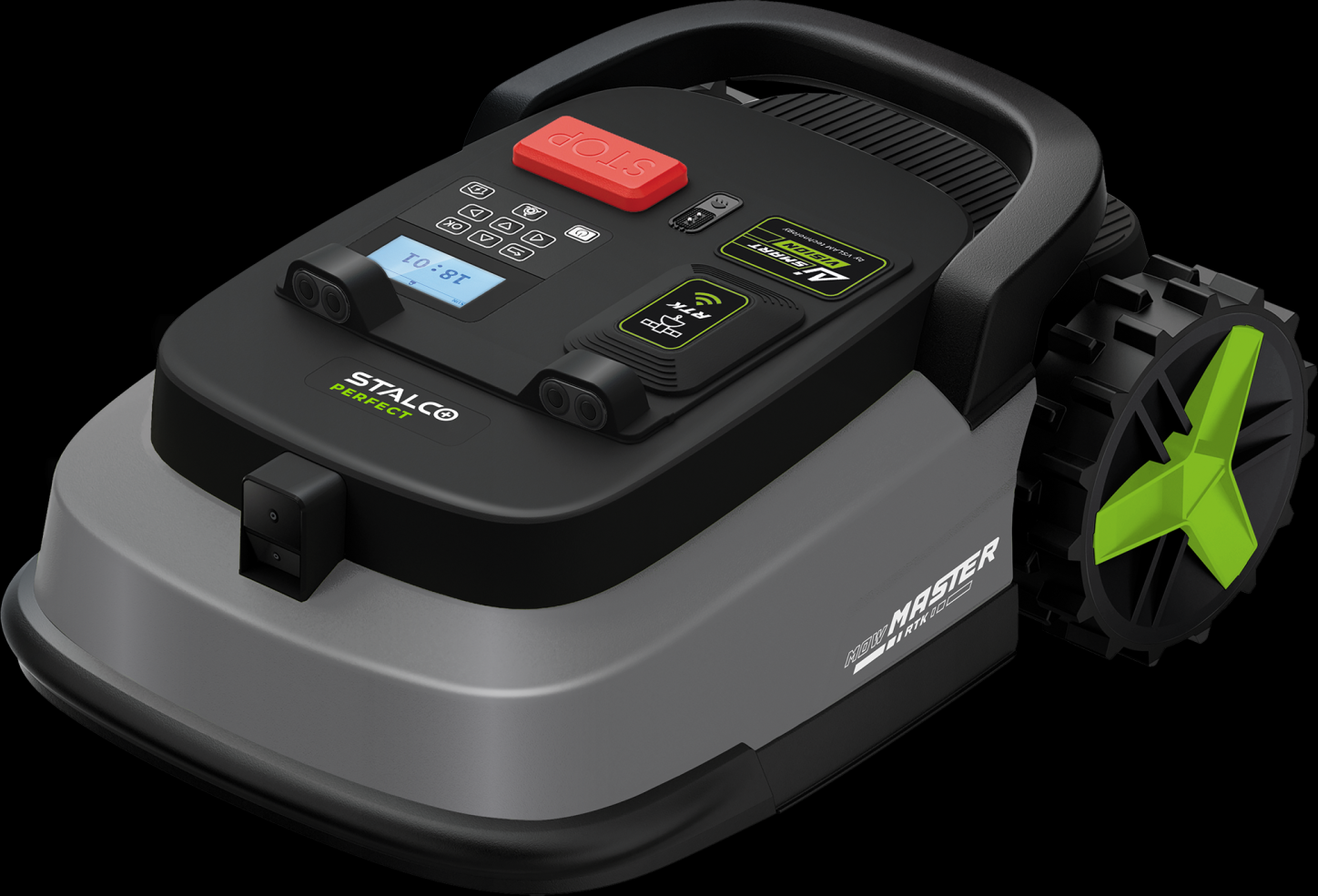 Robotická sekačka Stalco Perfect MowMaster RTK je určená pro automatickou péči o trávník o rozloze až 3 000 m². Technologie RTK je navržena pro uživatele, kteří vyžadují maximální přesnost a úplnou kontrolu nad procesem sečení. Eliminuje potřebu ohraničujících drátů a zajišťuje přesnost polohování 1–2 cm, což umožňuje rovnoměrné a konzistentní sečení po celém trávníku. Robot dosahuje maximální účinnosti sečení až 1 500 m² za den a snadno zvládá svahy až do sklonu 55 %. Systém SmartVision (VSLAM) analyzuje okolí v reálném čase, což umožňuje plynulé manévrování a bezpečné vyhýbání se překážkám, zatímco konektivita LoRa zajišťuje stabilní komunikaci a spolehlivé ovládání i na velkých pozemcích. Prostřednictvím aplikace může uživatel sledovat práci robota v reálném čase, nastavovat výšku a rychlost sečení, spouštět proces mapování terénu (dálkově nebo v ručním režimu), a také spravovat zóny sekání a harmonogramy. Celý systém doplňuje inovativní systém krojového talíře, který minimalizuje odpor při práci na vyšší trávě nebo nerovném terénu, zajišťující stabilní a přesné sečení za různých podmínek.